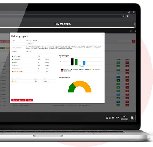 Il nostro software onnicomprensivo ti consente di importare direttamente i file dal tuo software CRM nel tuo software SMS. Puoi usare questi dati per invii personalizzati a cui i destinatari possono rispondere attraverso un numero telefonico virtuale, SIM hosting e parole chiave SMS shortcode. I nostri resoconti dettagliati ti consentono di generare un resoconto in ogni momento e controllare la tua agenda.